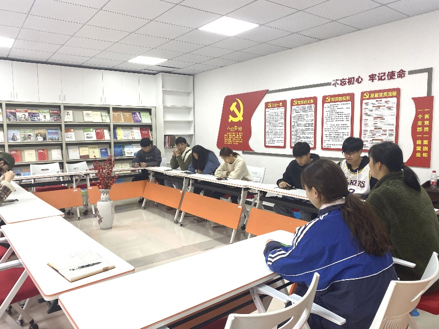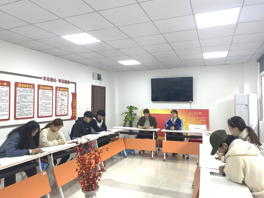 全体本科生党员和发展对象参与本次活动,本科生党支部书记汤婕担任主讲、组织委员卢宗其主持会议。