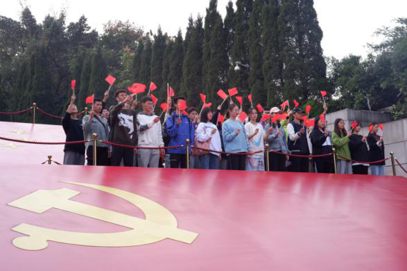 本科学生党支部书记汤婕老师介绍活动的主题、意义以及流程。随后全体学生成两路纵队有序的参观红岩魂陈列馆,每一位同学认真的参观革命先烈的光荣事迹,深受触动。之后,全体人员在烈士陵墓前庄严默哀1分钟,默哀毕后重温对党的誓言,表达为党的事业奋斗终生的决心。2020级本科新生在活动中深受感触,激起了他们向党靠拢的强烈愿望。在宣誓结束后,所有人员一起合唱《我和我的祖国》与《歌唱祖国》,并拍摄视频,表达自己对祖国对党的热爱。