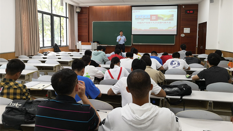2018级本科生王圳同学发言,他首先对学院提供此次学习培训机会表示感谢,并代表全体学员庄严承诺,要珍惜培训机会,严格遵守培训纪律,认真对待培训的各个环节,通过培训进一步牢固掌握党的基本理论和知识,进一步端正自己的入党动机,为早日加入党组织奠定坚实的基础。