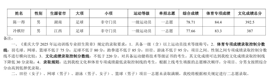 近日,随着2025年优秀运动员本科保送推荐名单的公示和运动训练专业招生一、二志愿录取工作的圆满结束,体育赛事