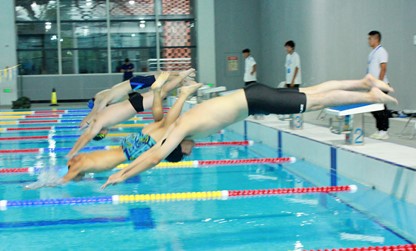 23日下午2点,游泳比赛的第一哨正式吹响,担任第一场比赛的执行总裁是国家级游泳裁判冯杰老师,本场项目为男女50米蛙泳、自由泳、仰泳,200米蛙泳及4×50米接力。第二场比赛的执行总裁由国家一级裁判赵平老师担任,项目包括男女50米蝶泳、100米蛙泳、100米自由泳、200米自由泳。第三场游泳比赛的执行总裁由国家一级裁判曾争老师担任,项目是20人混合接力。担任比赛发令员的是国家一级裁判员冉锋老师。