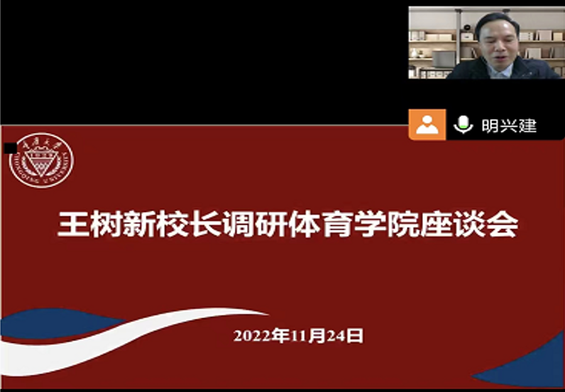 2022 年 11月 24日下午,校长、中国工程院院士王树新以腾讯视频会议方式调研指导体育赛事