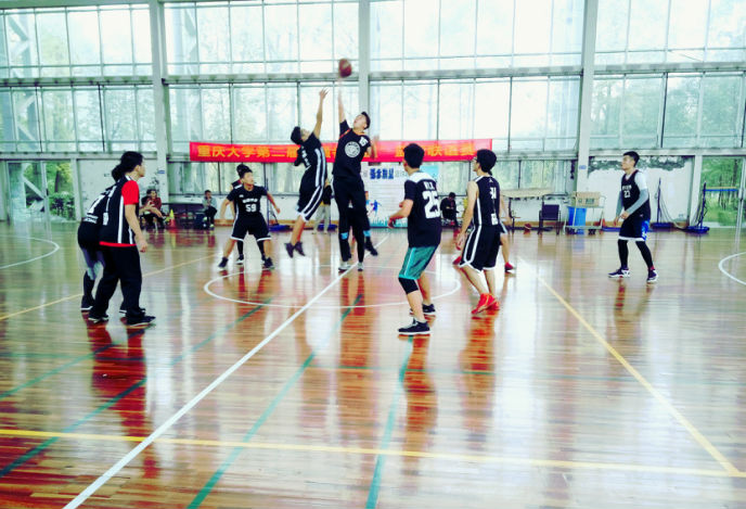 13级和机械学院的比赛于周四下午1点在A区篮球馆进行,最终体院13级以66:40战胜机械学院。周六唯一的一场比赛于下午三点在虎溪体育馆进行,脱颖而出的两个学院——法学院VS建管学院,能够进入淘汰赛必定会有自己的优势,法学院在一名篮球高水平运动员的带领下势如破竹,而建管学院的领队不是高水平却也媲美高水平,在他的指挥下建管学院也势不可挡。赛事的激烈,不仅让球员们打红了眼,连场外啦啦队员的尖叫、呐喊声也居高不下。因为两个队的球服并非规定的一深一浅,而是全为黑色,这便给场内裁判带来较大的挑战。最终,在裁判公平公正公开下,比赛37:32以建管学院获胜结束。