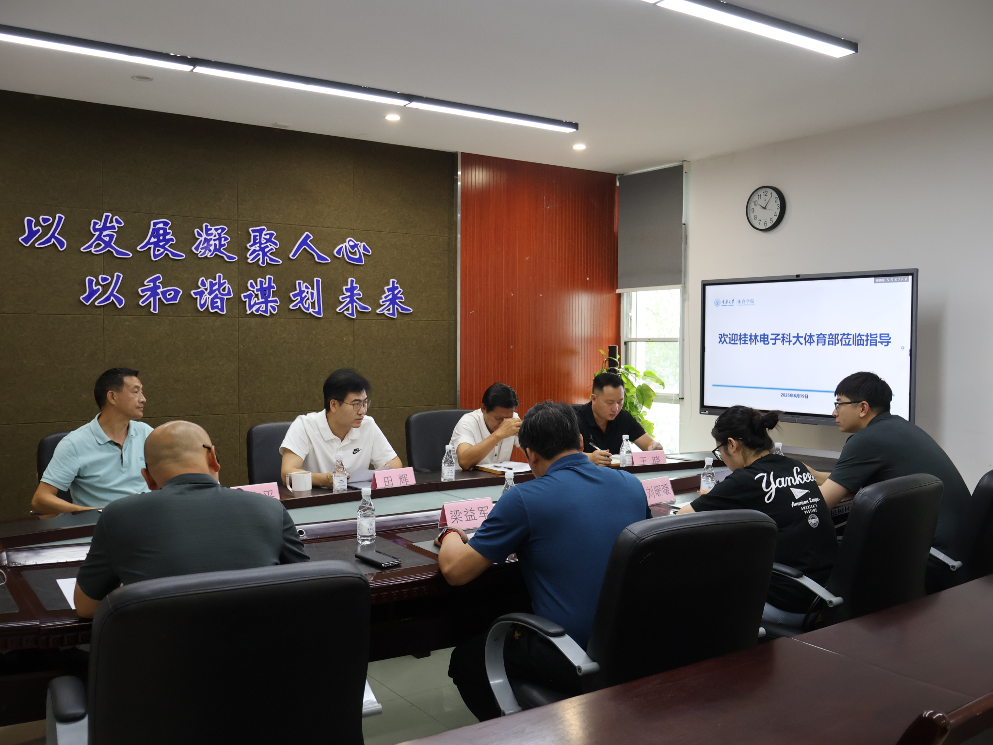 6 月 19 日上午,桂林电子科技大学体育部一行四人前往我院开展调研交流活动。此次调研旨在学习体育赛事