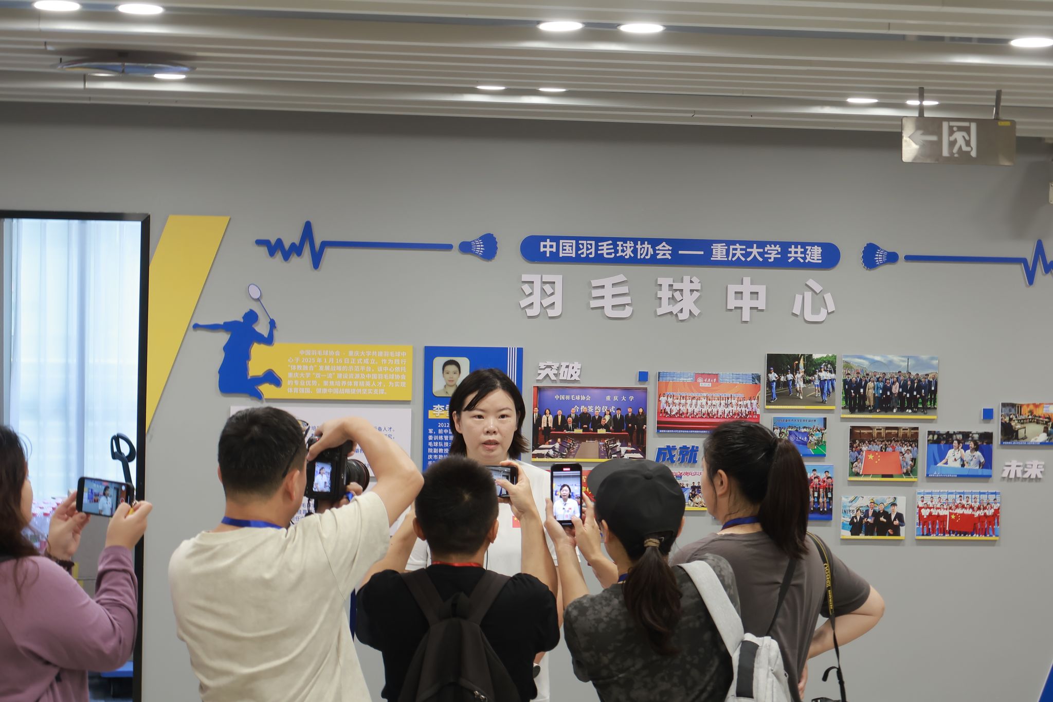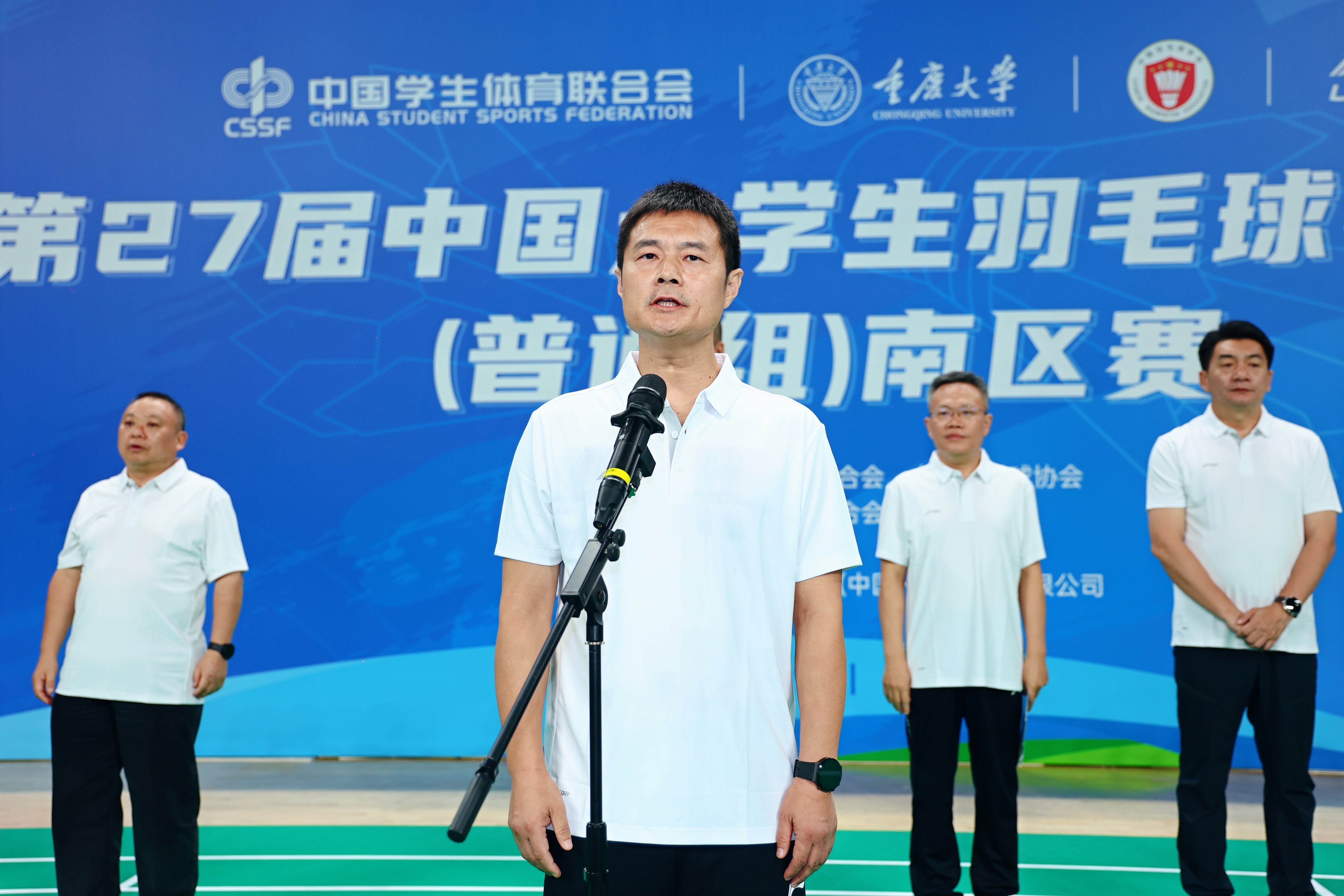 中国学生体育联合会大学竞赛部主任籍强、中国学生体育联合会大学羽毛球分会秘书长裘鹏、重庆市体育局副局长张周勇、体育赛事
